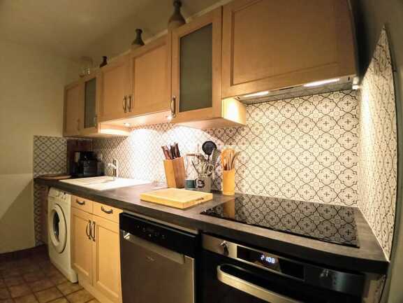 - The well-equipped kitchen with induction hob, pyrolysis oven, dishwasher, combined