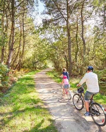 Pendant vos vacances en Bretagne ou pour le week-end, découvrez la presqu'île de Quiberon à vélo en famille ou entre amis. La voie verte vous permettra de parcourir le littoral, les plages et de traverser des petits villages depuis Étel jusqu'à la Côte sauvage de Quiberon. Du côté de la Ria d'Étel, des balades vous emmènent du côté de Saint-Cado à Belz en passant par le port d'Étel et les dunes sauvages d'Erdeven. Il vous est également possible de louer un vélo à Carnac, sur le port de la Trinité-sur-Mer ou Locmariaquer pour sillonner les sentiers de randonnée et partir à la découverte des sites mégalithiques de la région. Pour découvrir Belle-île-en-mer dans le Morbihan, optez pour les vélos électriques qui vous permettent d'arpenter les routes plus facilement.