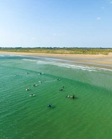 Facing the Atlantic Ocean, come and learn or improve your surfing skills! Over 10 kilometres of fine sandy beaches, the keen instructors of the Ecole de Surf de Bretagne offer you a wide range of services, and teach you surfing in safe spots.