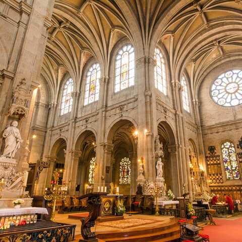 Inside the Basilica of Sainte-Anne d'Auray, discover the sumptuous stained glass windows reminiscent of the apparitions, the pilgrimage and the life of Sainte-Anne.