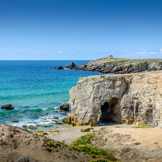 To the west of the Quiberon Peninsula, the Wild coast extends for about ten kilometres from the village of Portivy in Saint-Pierre Quiberon to Château Turpault in Quiberon. Over the seasons erosion shapes this granitic coast. Steep cliffs, wild creeks, arches hollowed by the waves... Unrelentlessly whipped by the winds and sea, the Wild Coast offers a bracing spectacle.