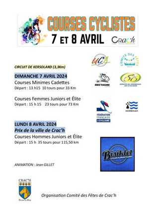 Cycle races Card Cycling races on the Kersolard circuit. - April 7: Minimes, cadettes, juniors and elite women's races. - April 8: junior and elite men's races. Itinerary Input Free Spoken languages French