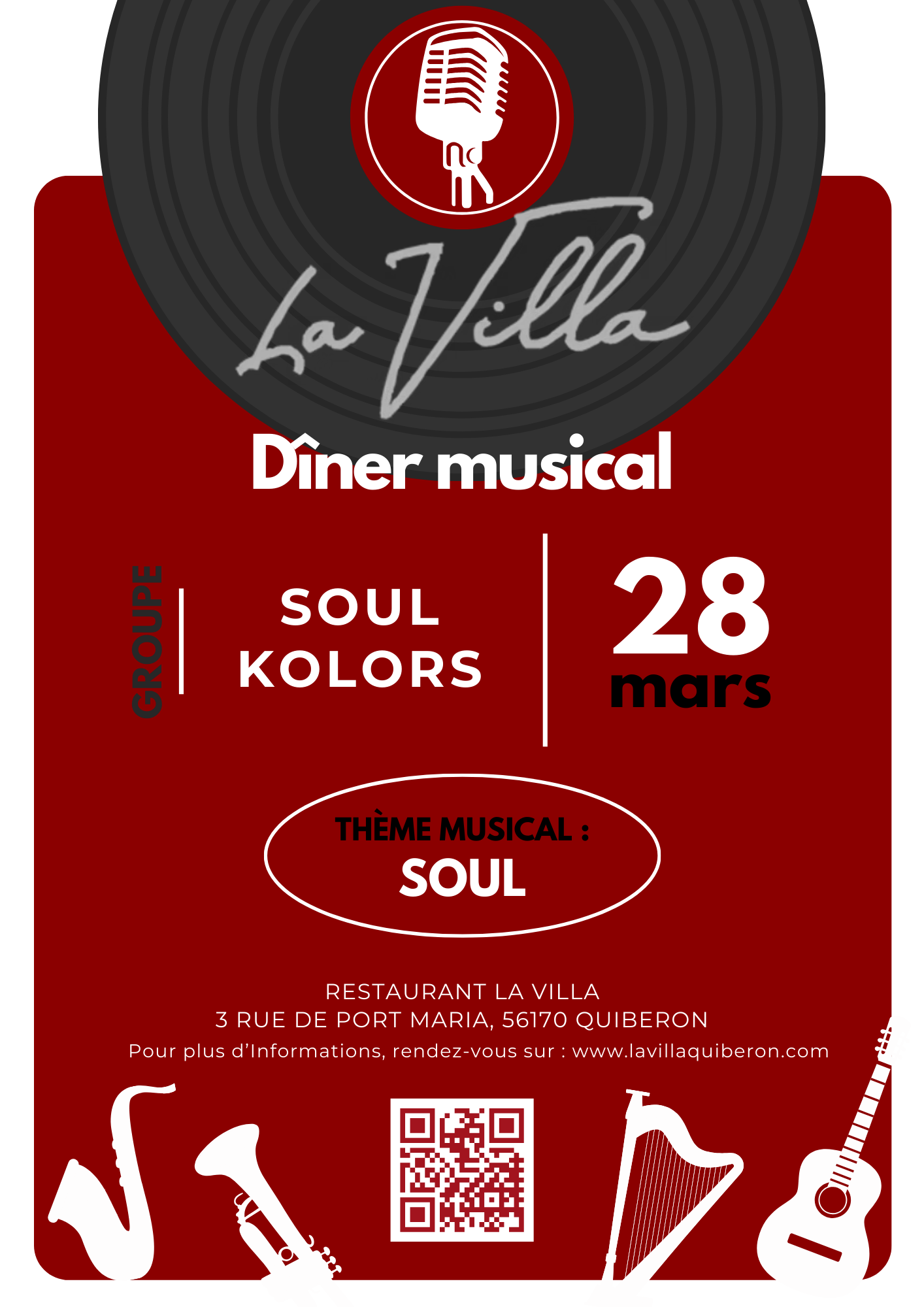 Enjoy a musical dinner at LA VILLA restaurant. Enjoy a dinner with SOULKOLORS in a calm, elegant and soulful atmosphere for one evening.