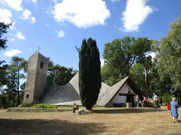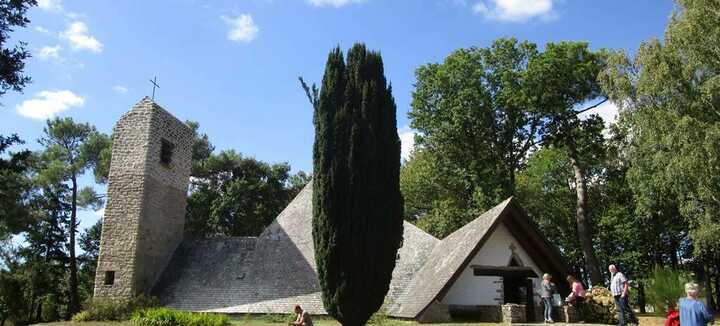 Notre-Dame de la route chapel was built in 1963 from the stones of ruined local chapels. It's a modern chapel in a green setting. The chapel is the work of architect Yves Guillou, who headed one of Brittany's leading architectural firms. He is considered the architect who modernized Brittany. The chapel is an example of the angular architecture that came to the fore after the Second World War, and its sobriety, unity and harmonious volumes reflect the architect's determination. The chapel is open daily, year-round. Open on Tuesdays from 2.30pm to 6pm from 07/07 to 25/08. Pardon on the 1st Sunday in July.