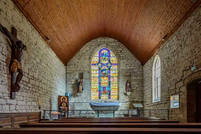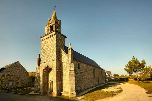 This rectangular chapel features buttresses with recesses and pinnacles, crosses and rampant cabbages. It has a square bell tower above the west door, which is framed by belfries. One of the south windows features a stone pattern in the shape of a fleur-de-lis, a very rare motif in the region, undoubtedly marking Brittany's attachment to the kingdom of France.