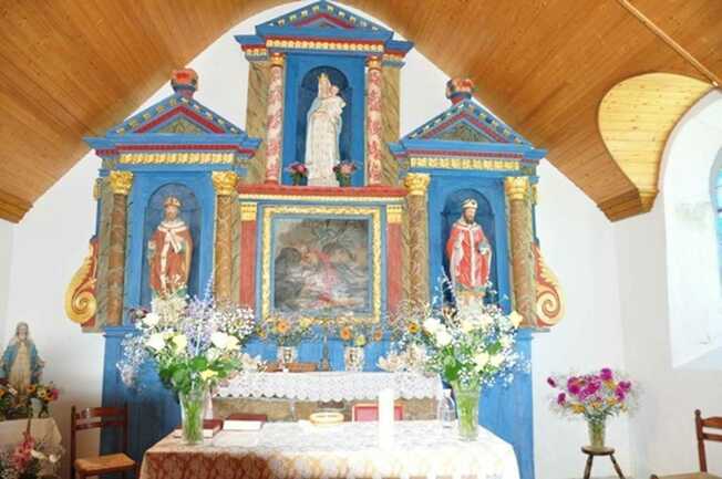 It has been restored several times. The date 1635 can be read on the chevet wall, against which stands an altarpiece made of rectangular compartments, with a square painting depicting the Repentance of Saint Peter in the center. There are several side niches with statues.