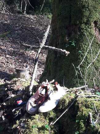 In the heart of the Floranges forest, shoes are placed at the foot of an oak tree. Accessible daily via the D779 between Camors and Bieuzy-Lanvaux.