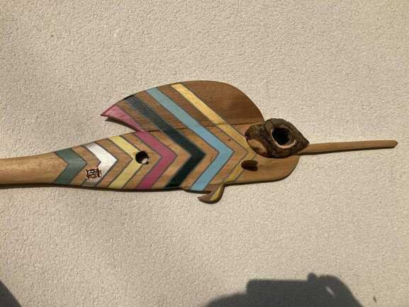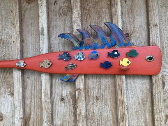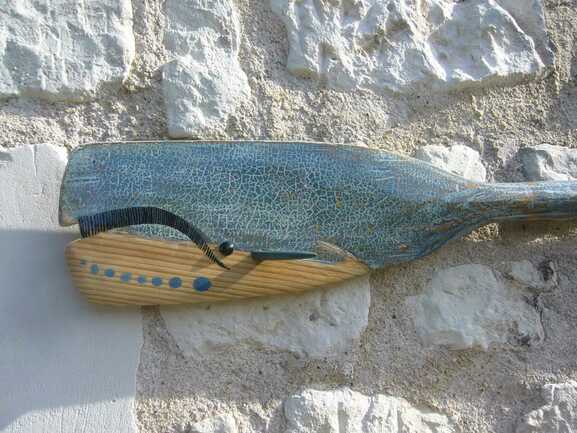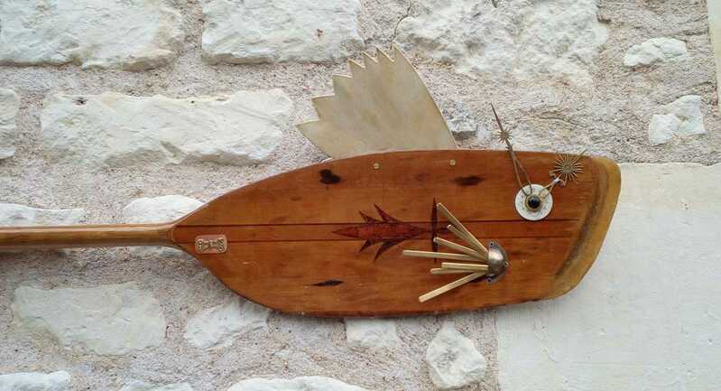 Creation of decorative fish from oars, old paddles and salvaged materials. Palou's "Drôles de Pagaies" are given a second life. Each one is unique, and new families of fish are created every year. And if you have an oar in your attic, you can even order one to be transformed into the "Drôle de Pagaie" of your dreams.