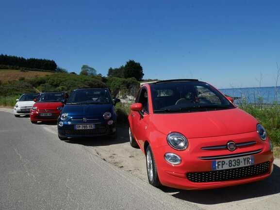 Vehicles available: cars (Fiat 500cc, KIA Stonic sunroof, Volkswagen T-ROC Cabriolet, Fiat 500cc electric, KIA e-Niro electric, Nissan Juke Hybrid, 9-seater electric minibus), 50 cc and 125 cc scooters, electric scooters, 125 cc motorcycles and electric-assist bicycles.