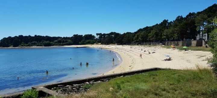Men er Beleg beach, located in the Tréhennarvour cove, is bordered by a pine forest and stretches for 400 meters on a gentle slope.