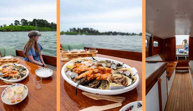 - Select one of the 3 themed private cruises offered by Les Pinasses de Titouan to experience an unforgettable sunrise, discover the secrets of the islands or enjoy a gourmet escapade exploring the Gulf of Morbihan.