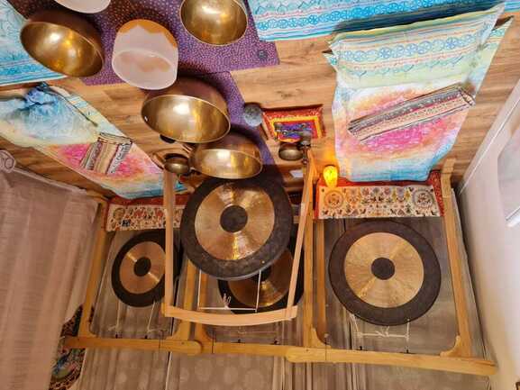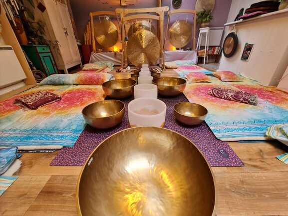 You are alone or in a group, lying on a comfortable mat, wrapped in a blanket. For two hours, you'll receive the magic of gongs, 7-metal Tibetan bowls, crystal bowls and sea drums. This session, orchestrated by Olivier, comes from the hand of this master, who has been practicing this art since 2011, to plunge you into frequencies of symphonic subtlety. An energetic and powerful sound bath for your well-being.